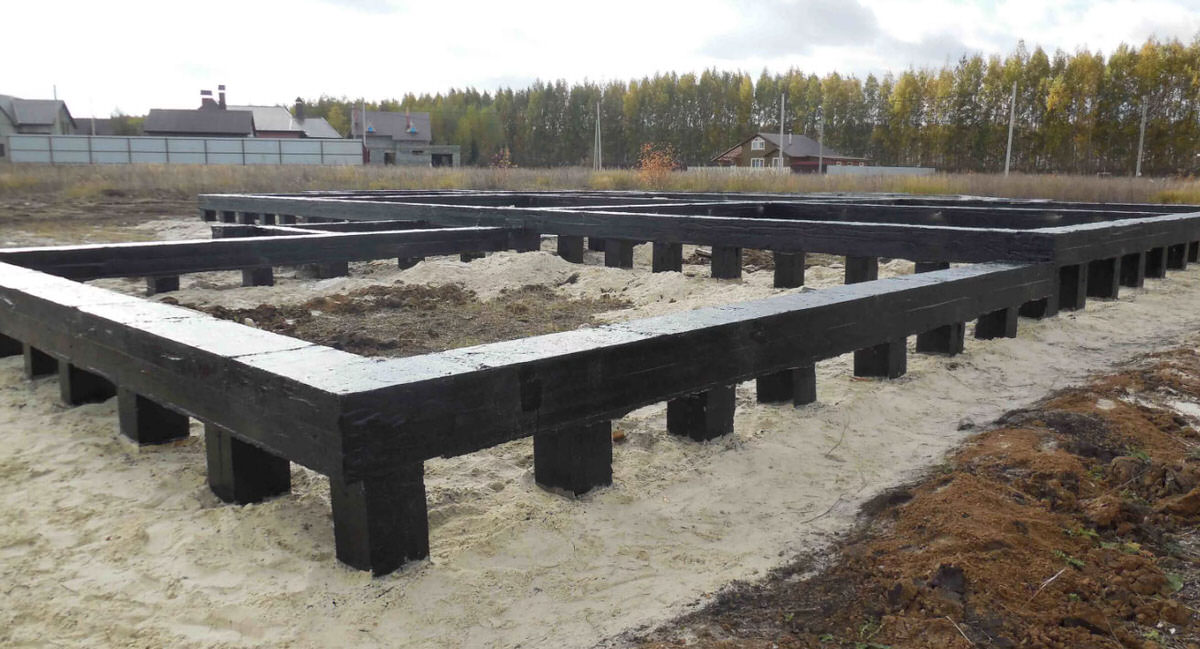 Ростверковый фундамент подходит для каркасных домов и коттеджей, построенных из профилированного или клееного бруса, облегченного кирпича, пенобетонного блока.