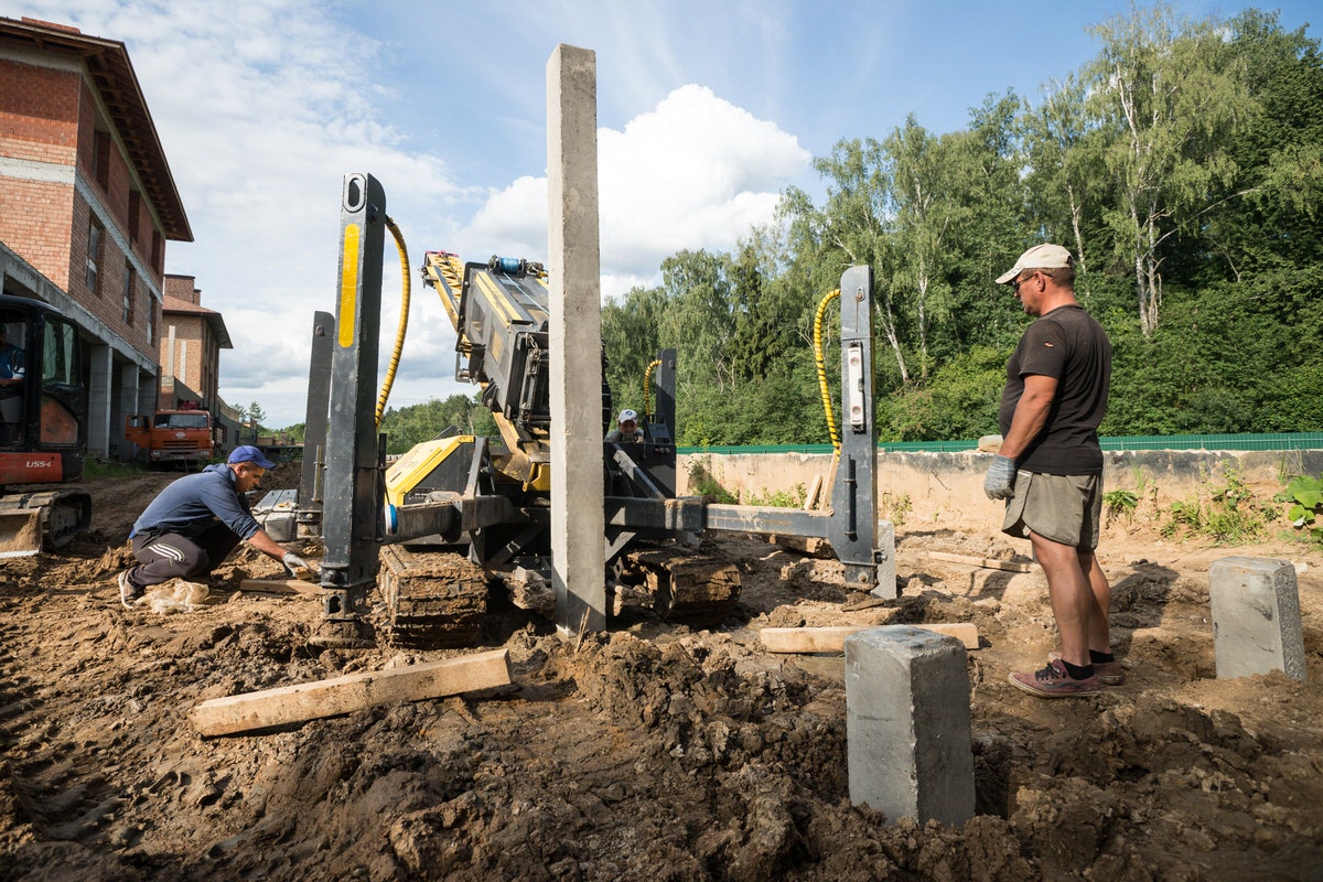 Два специалиста ставят до 80 элементов за один день при помощи сваекрута. Механизированный метод существенно сокращает сроки работ.